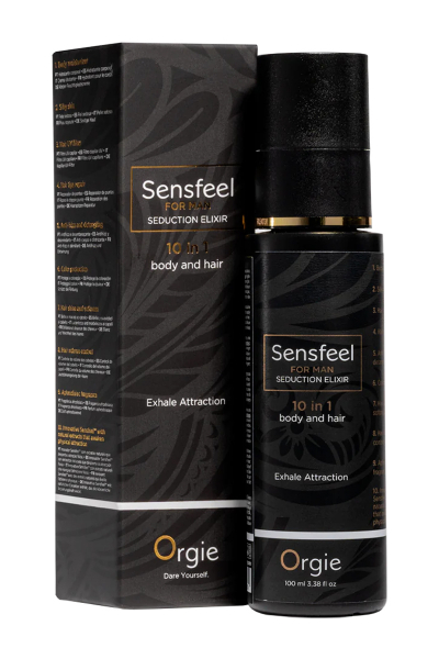 Sensfeel for Man Seduction Elixir, la lotion masculine 10 en 1 pour le corps et les cheveux : parfum aphrodisiaque, booster de phéromones, soin de la peau et des cheveux.